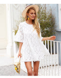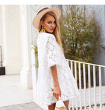BOHO Chic Side Slit Lace White Chiffon Maxi Dress