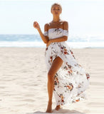 BOHO Chic Side Slit Lace White Chiffon Maxi Dress