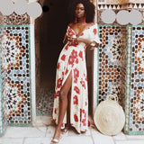 BOHO Chic Side Slit Lace White Chiffon Maxi Dress