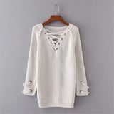Sexy backless knitted lace up back sweater